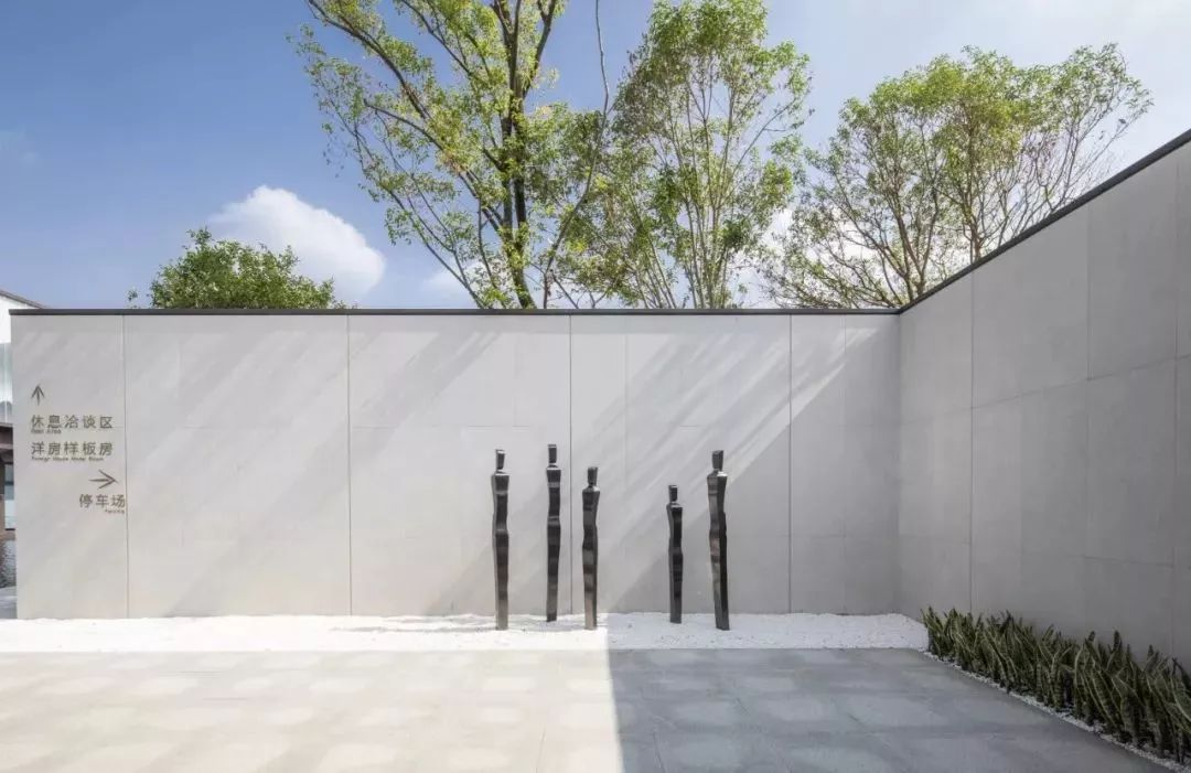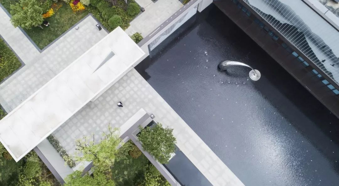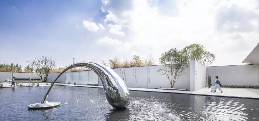折線型的入口空間不僅流動性更強,半封閉的空間更具有開放性和引導(dǎo)性,極具昭示性的精神堡壘、景墻、涌泉,引人入勝。