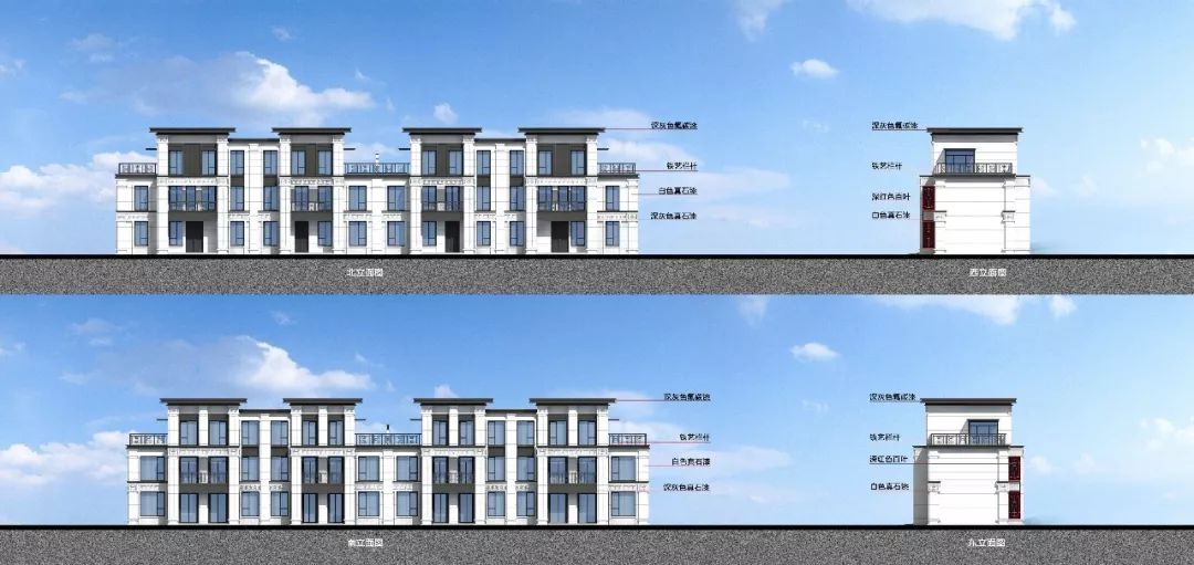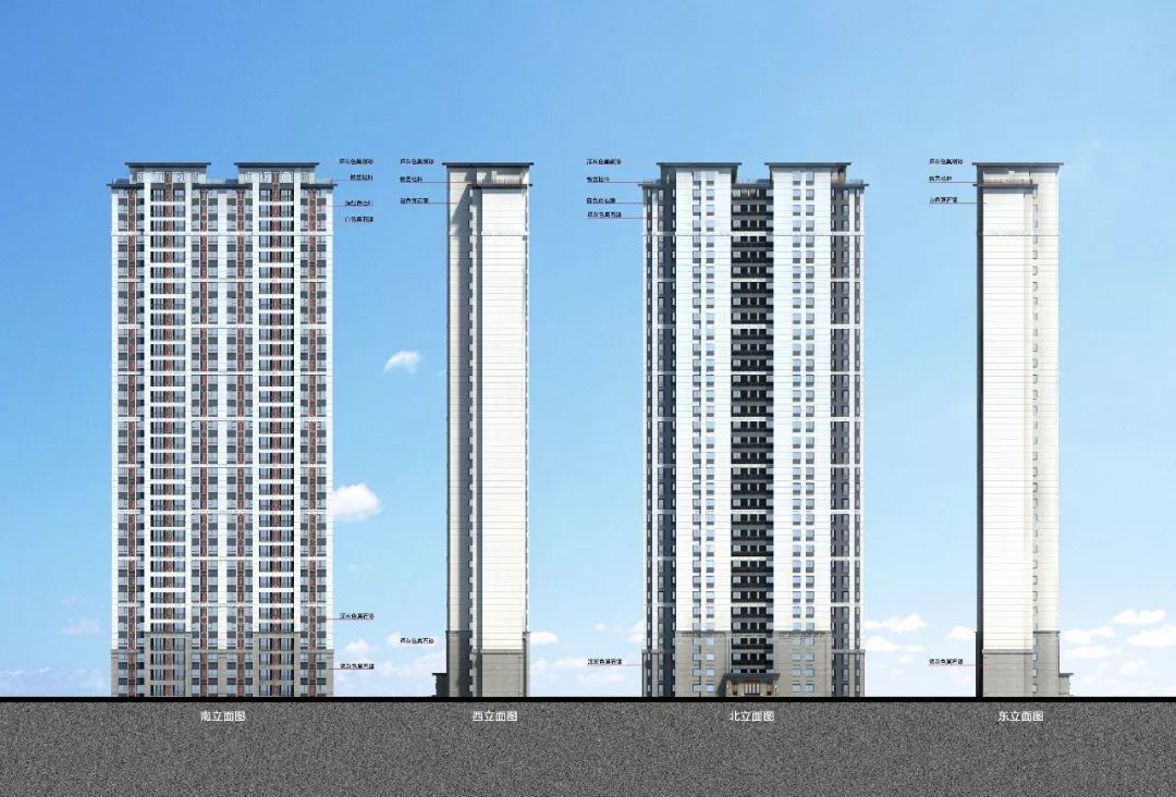 立面處理強調(diào)細(xì)節(jié)、主體層次和線腳細(xì)部處理;窗的做法講究開放性和藝術(shù)性,在充分考慮節(jié)能的基礎(chǔ)上,適度的擴大窗的面積,以打通內(nèi)與外的視覺界限,擴大視野范圍,望景觀瀾,使風(fēng)景成為室內(nèi)空間的外延。