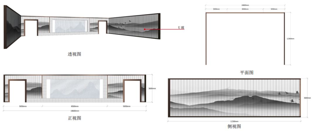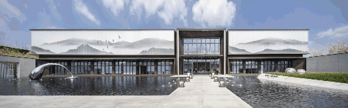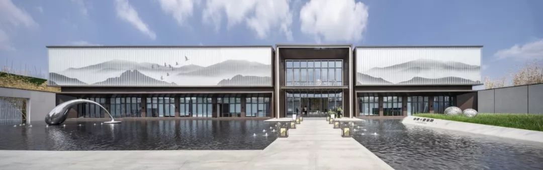 售樓處造型構(gòu)思取自濟寧的文化和山水地形,承京杭大運河之韻,進(jìn)行抽象演繹。朦朧的山水畫隱喻了濟寧城市的文化意蘊,水景景觀配合山水畫卷,相得益彰,引人入勝。