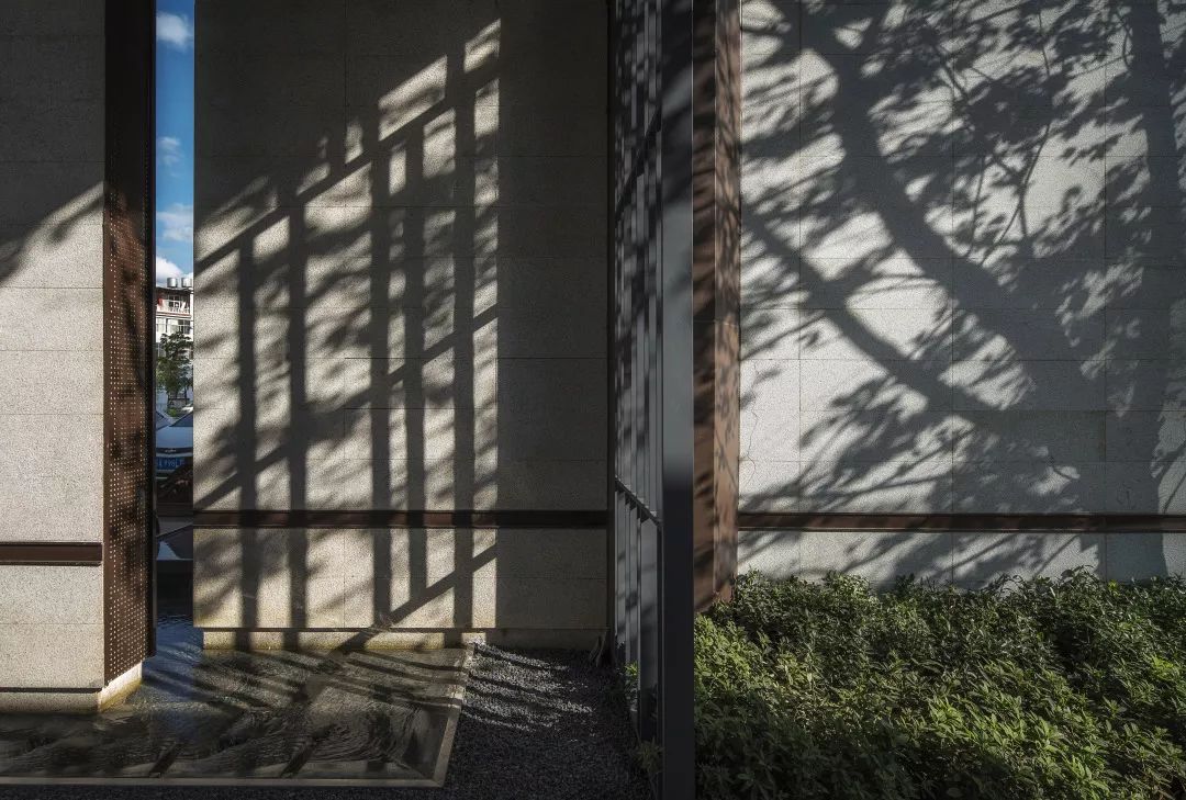 越過門廊,轉向庭院。跌水小景輝映著庭院景致,微風略過,漣漪泛起的是內(nèi)心對寧靜的向往。寬闊的前庭空間,極大的強調(diào)了“入則尊貴”的儀式感,將雅致格調(diào)體現(xiàn)的淋漓盡致。