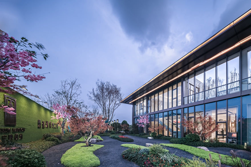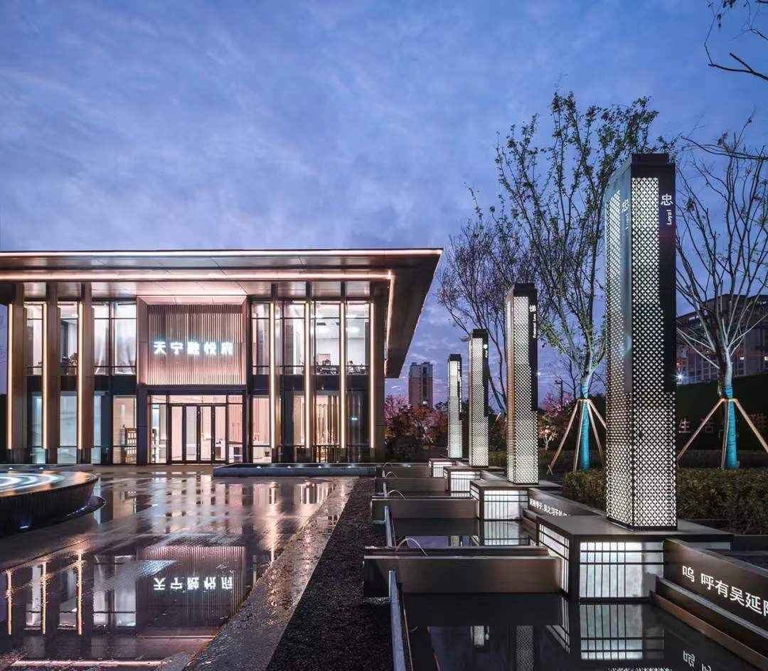 對稱規(guī)整,端莊大氣的示范區(qū),以其挺拔的挑檐凸顯建筑的輕盈舒展,傳承著城市的厚重文化。大面積玻璃幕墻極大的延展視野,打破了室內(nèi)與室外的界限,實現(xiàn)了建筑與景觀的完美融合。