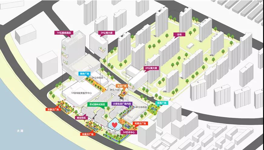 項目將打造為總建筑面積約30萬平方米的地標級城市綜合體,是一個擁有五星級酒店“太湖之帆”,姑蘇風情街“太湖之苑”,白鷺藝術中心”太湖之鷺”等眾多物業(yè)類型的大型建筑群落。