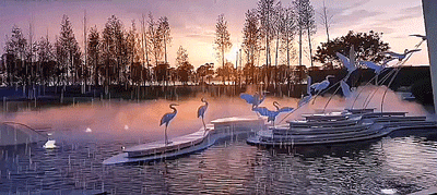 郎峯項目的造型設計,靈感來自于湖邊的水鳥,來自于它們一躍而起且瞬間凝結的形態(tài);如何以建筑的語言將其展示出來,是本次設計的核心所在。