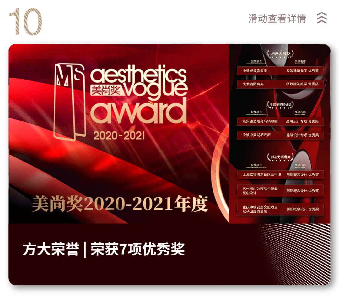 6月20日,美“力”潮生2020年度尋美盛典暨美尚獎頒獎典禮舉行。方大設(shè)計的溫州中南甌海印象項目以其獨特的現(xiàn)代美學(xué)建筑風(fēng)格,榮獲美尚獎地產(chǎn)人居類極致建筑美學(xué)【優(yōu)秀獎】。西安中梁壹號院項目以其簡潔明確的設(shè)計語言榮獲美尚獎地產(chǎn)人居類人文氣質(zhì)豪宅【優(yōu)秀獎】。中梁蘇州寬泰鉑園售樓處項目獲美尚獎·生活美學(xué)設(shè)計類、空間設(shè)計專項【優(yōu)秀獎】。西安中梁壹號院項目和德信杭州錢塘云莊項目均獲【十大美力住宅】獎項。