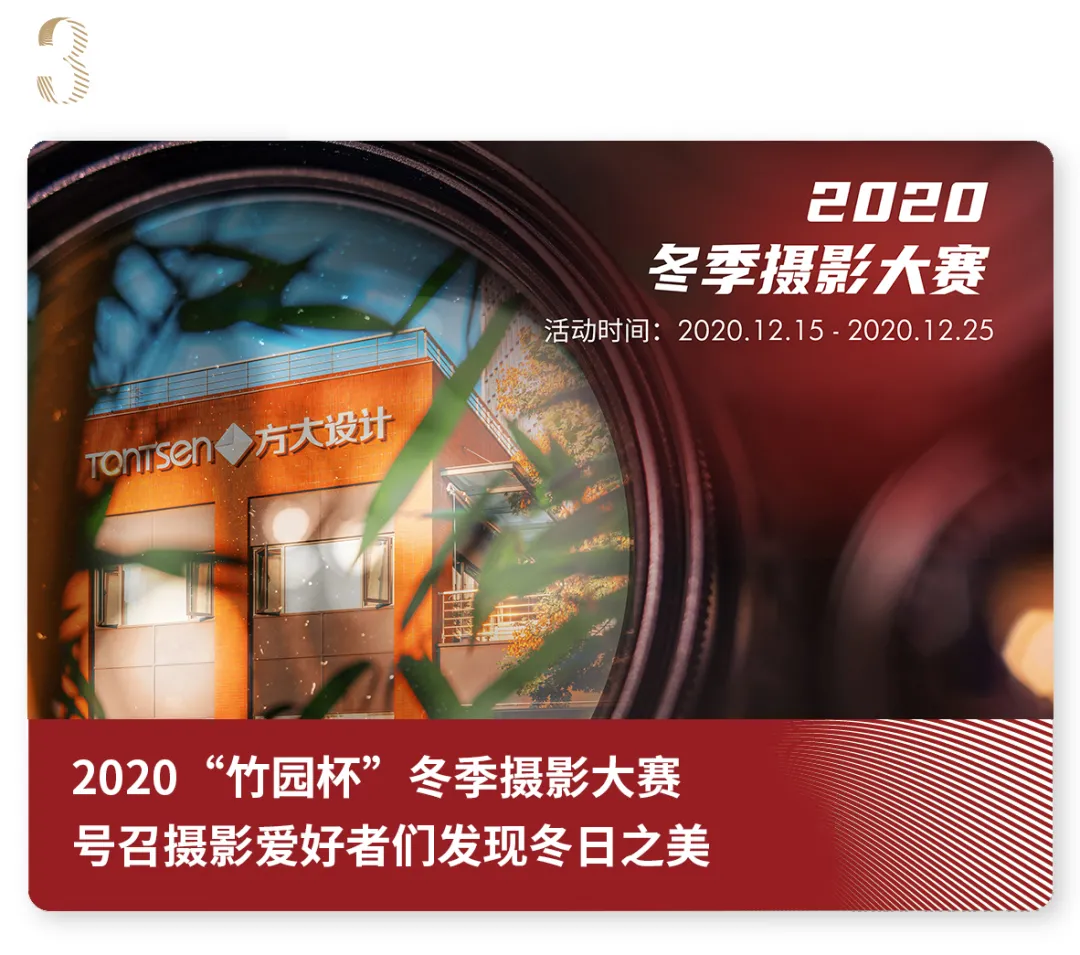 12月15日,2020方大設(shè)計“竹園杯”冬季攝影大賽啟動,號召攝影愛好者們發(fā)現(xiàn)冬日之美。