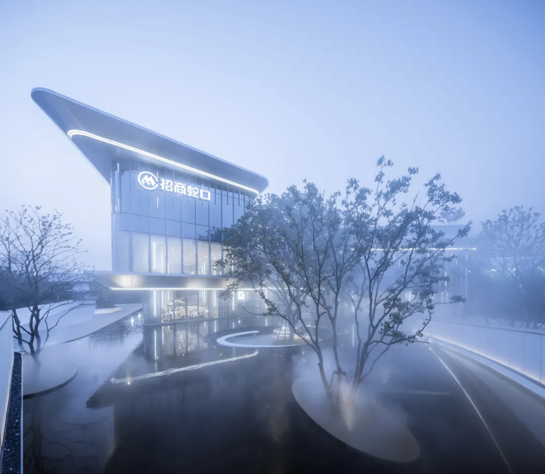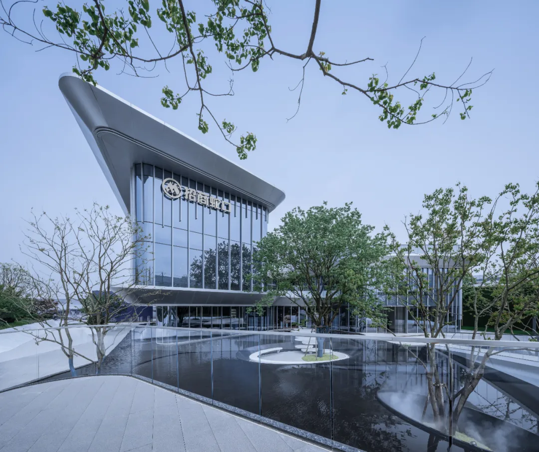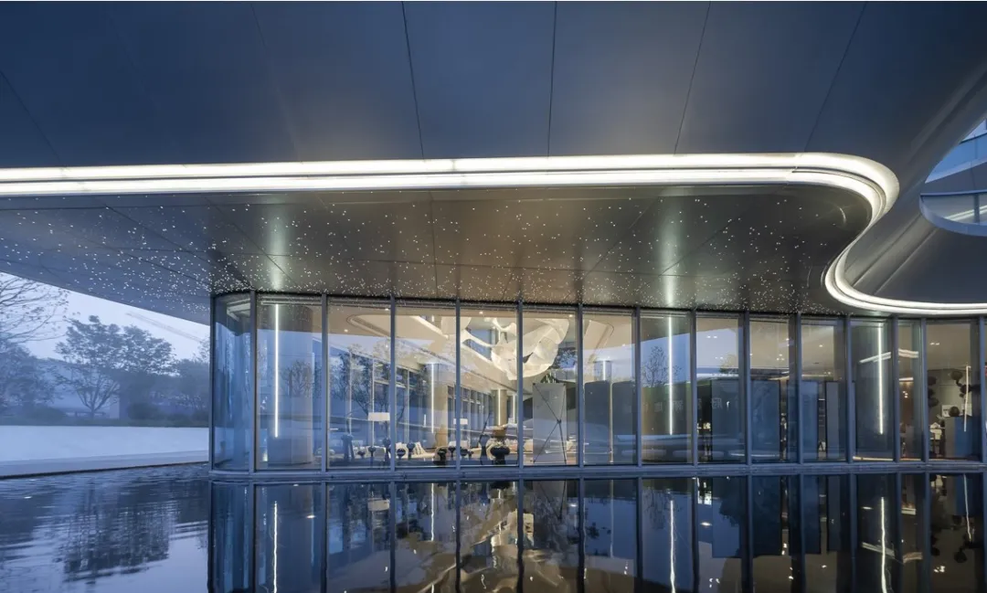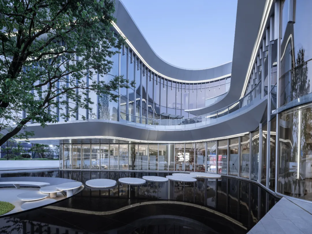 東望府生活美學館,用藝術化的建筑語言,結合高科技的現(xiàn)代材料,以靈動的造型形態(tài)、充滿魅力的光影變幻,實現(xiàn)了充滿想象力的時空穿越體驗,為高科技園區(qū)基地帶來新的集聚角落,打卡空間。