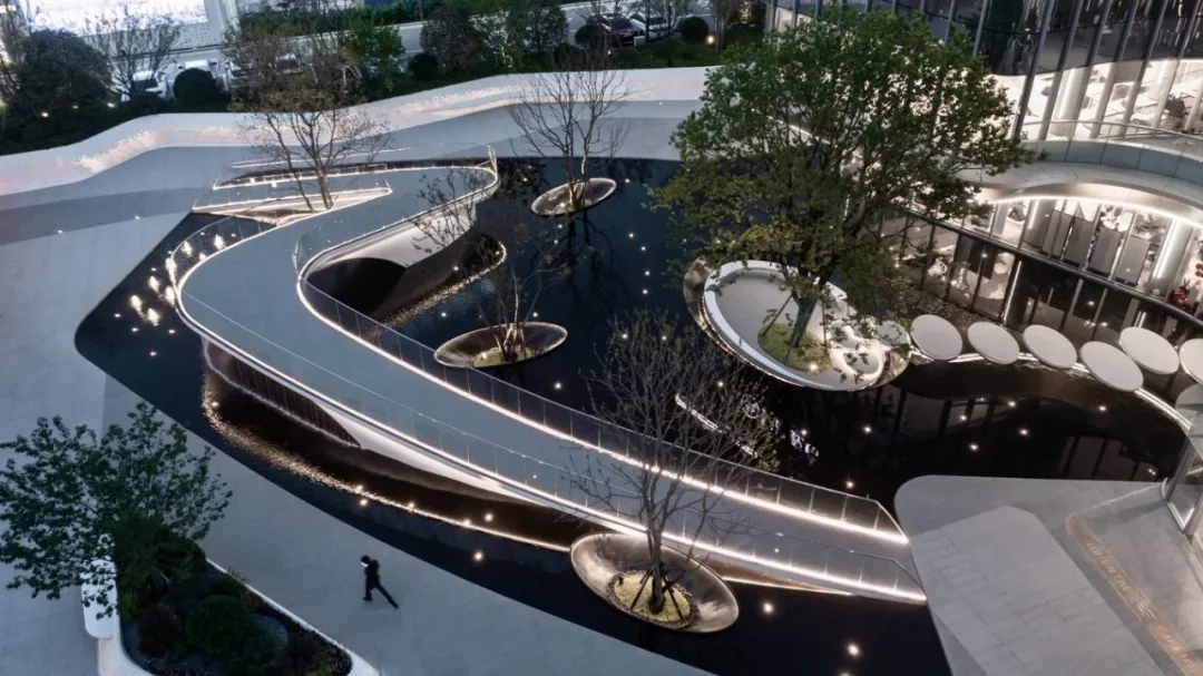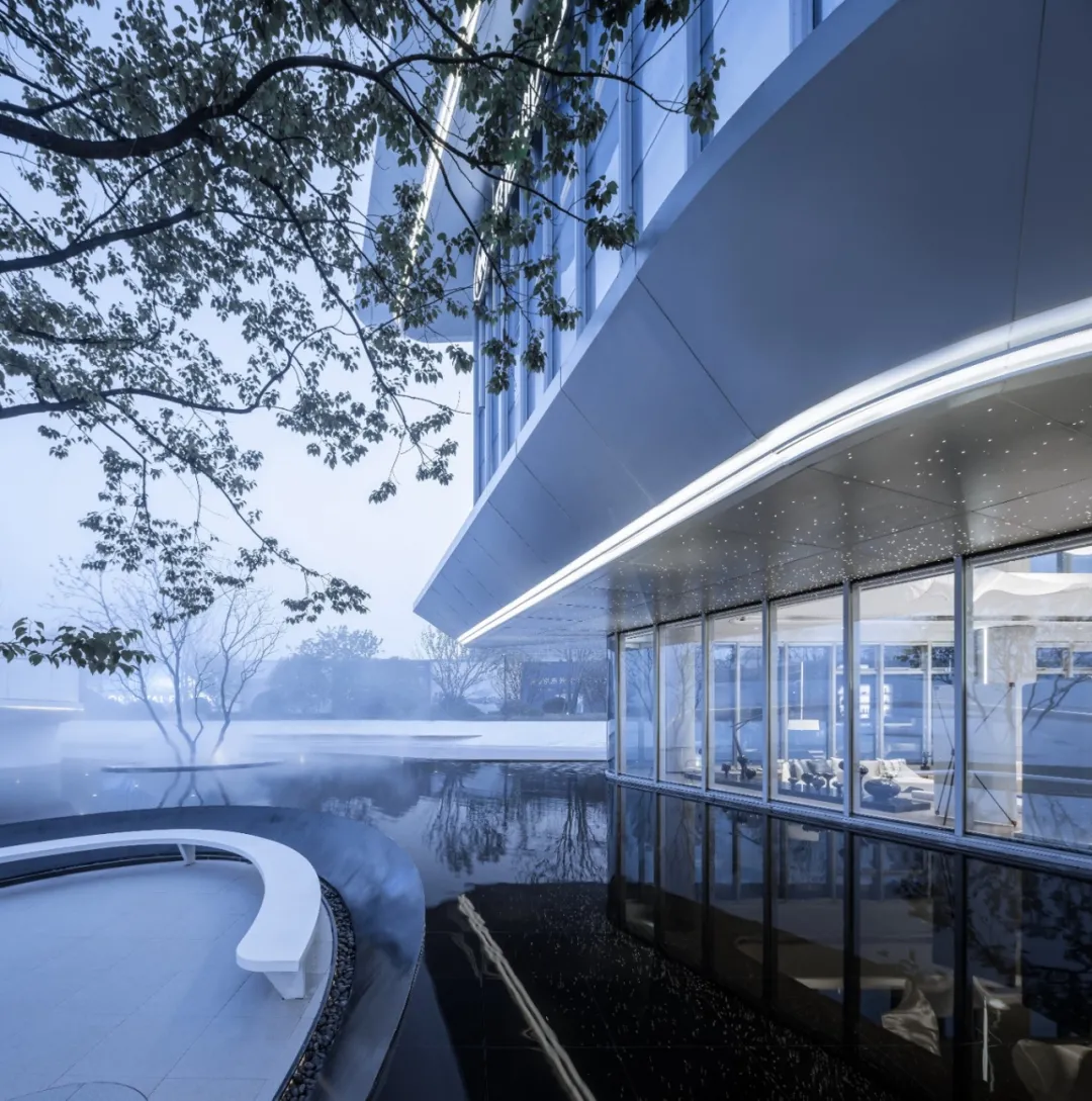 映入眼簾的是疊級大水景,倒映在星湖當中,打造強烈的視覺沖擊,增強場地記憶點,提升體驗感。