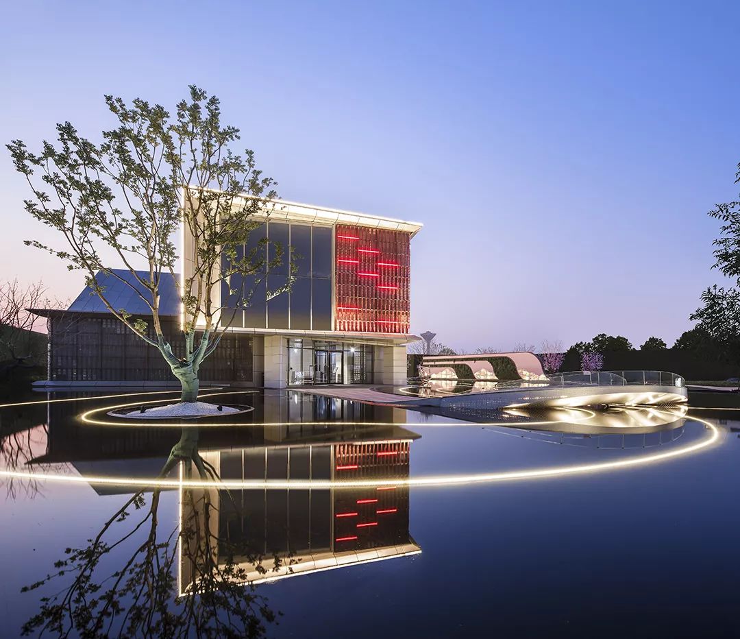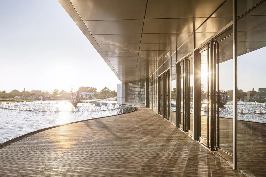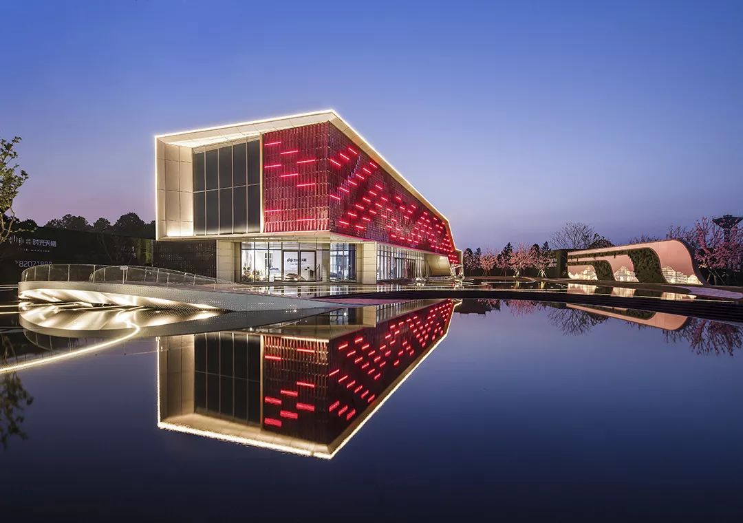 It's the golden autumn season of October, under the clear sky, the reflection of Shiguangtianyue building looks like a carp swimming in the lake. It performs a popular saying, "The carp has leaped through the dragon's gate", which indicates Nanchang's bright future.