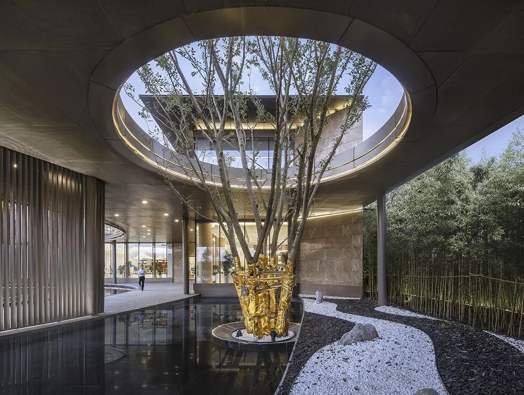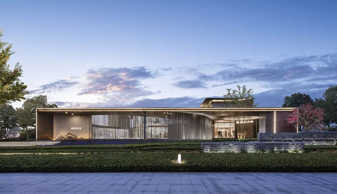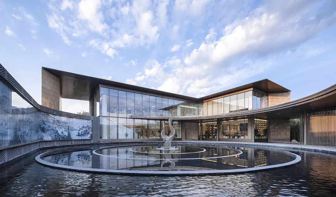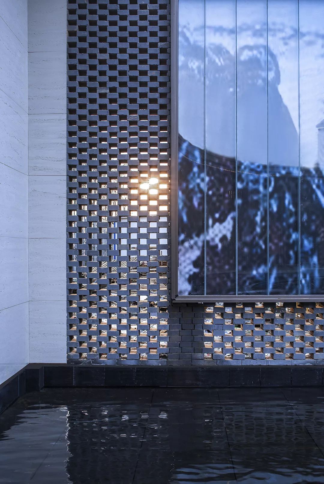 本案在設(shè)計中試圖打造一種新型的建筑形態(tài),將建筑、景觀、室內(nèi)進(jìn)行有機(jī)結(jié)合。利用玻璃磚的折射效果,重新定義絲綢的朦朧感如何刻印在靜態(tài)的建筑至上,為項目增加了一份專屬于東方的神秘感。