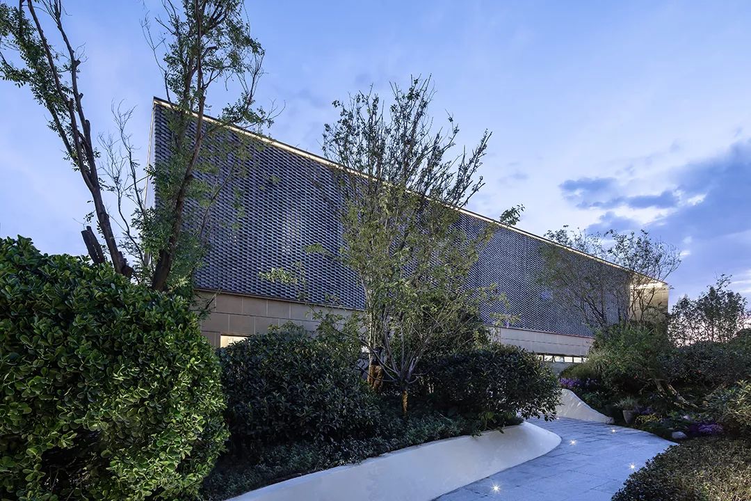 由于絲綢的透光性,絲織品被稱為游戲光束的藝術(shù)品。本案以光為材料,將“絲綢”的“透”從抽象的概念中轉(zhuǎn)化為靈動的建筑空間,配合充足的自然采光,將樹蔭下光影斑駁的日常加以重塑,打造了干練的景觀導(dǎo)入視覺效果,打造出兼顧藝術(shù)性、文化性與體驗(yàn)性的奇異空間。