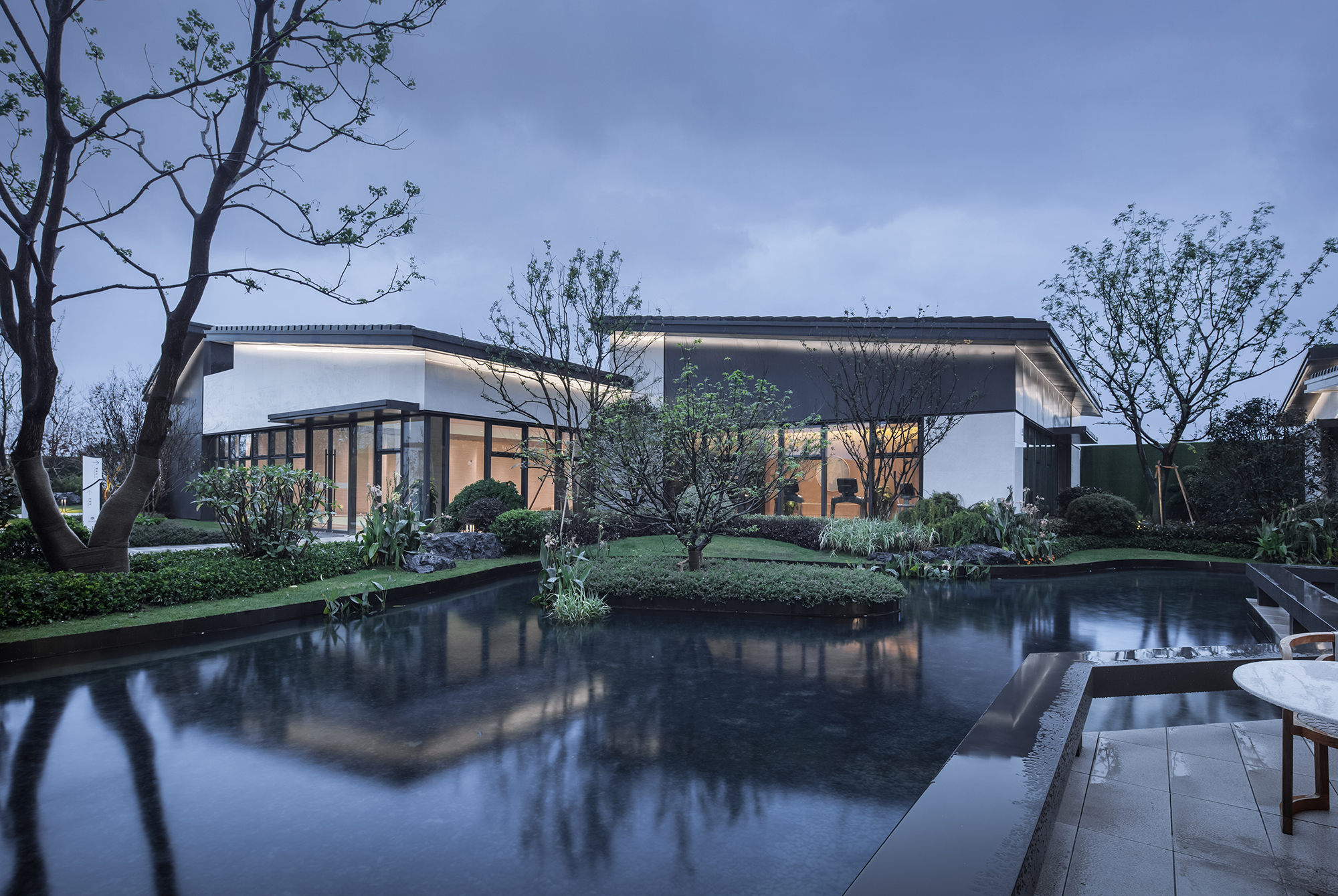 作為水院底景的銷(xiāo)售中心,是一座以中式美學(xué)為理念打造的現(xiàn)代建筑。它以中式的建筑傳承和基本形制為依托,結(jié)合現(xiàn)代建筑語(yǔ)言和生態(tài)節(jié)能的現(xiàn)代建筑材料,成就獨(dú)特典雅,氣質(zhì)鮮明,令人驚艷的新中式造型風(fēng)格。