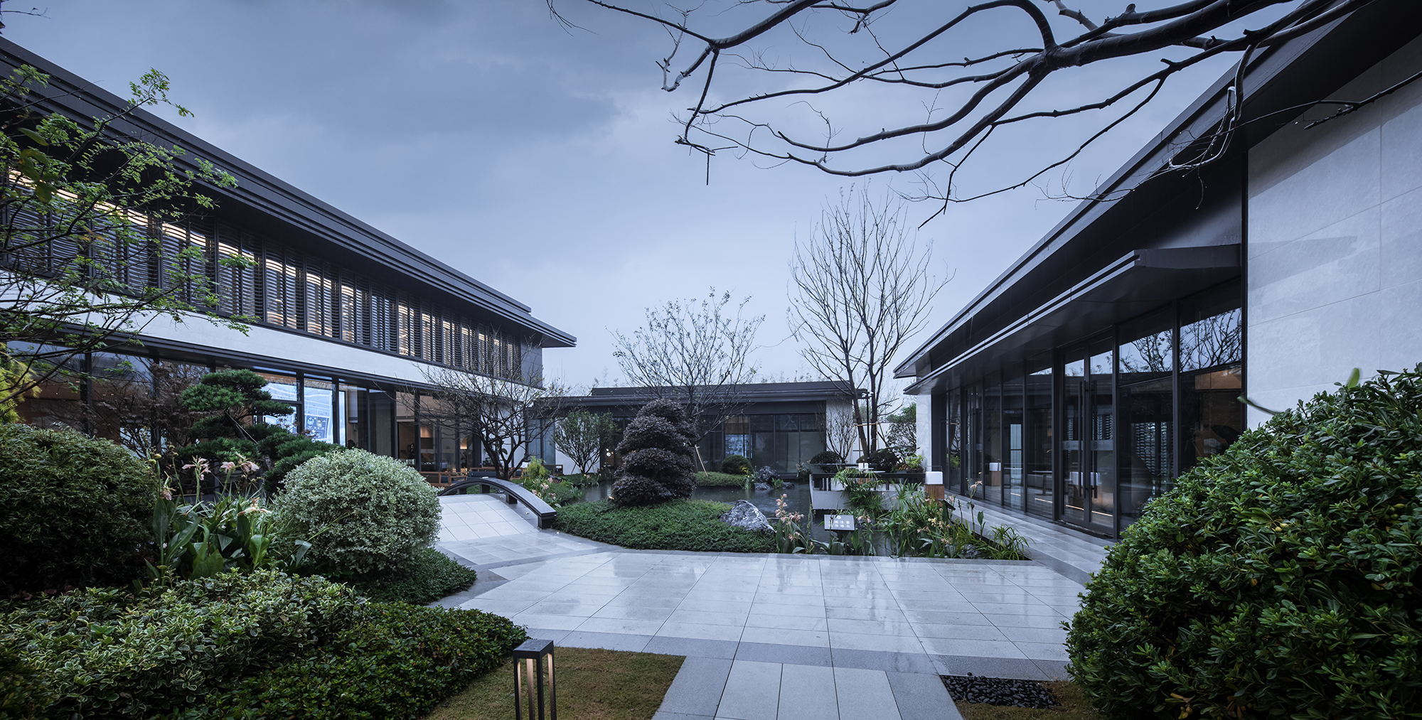 設(shè)計(jì)師秉承對(duì)中式文化的敬畏和對(duì)現(xiàn)代建筑的理解,以“一座有情懷的現(xiàn)代水鄉(xiāng)合院”為題,融入對(duì)“江南水鄉(xiāng)、人文藝術(shù)、現(xiàn)代科技、互聯(lián)網(wǎng)+”四者的詮釋及解讀,交出了自己的答卷。在這個(gè)兼具古典格調(diào)及現(xiàn)代屬性的城市,在慢生活與快節(jié)奏之間,營(yíng)造屬于烏鎮(zhèn)獨(dú)有的美學(xué)記憶空間。
