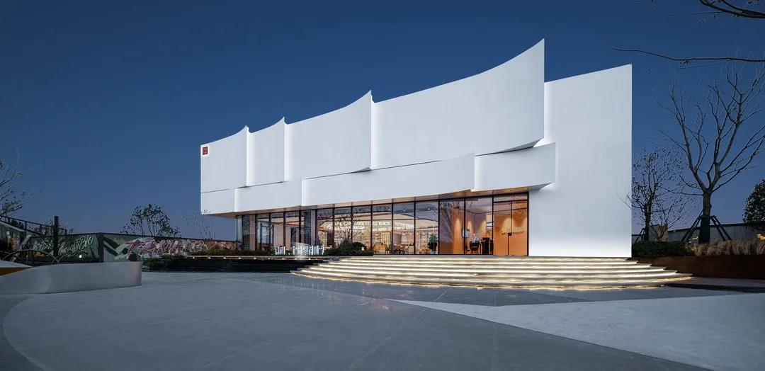 以數碼技術控制的材質表面弧度,尺度精準,施工便捷;鋁板、金屬槽、燈帶等多種材料與水泥板相互結合,豐富了建筑的細節(jié)打造,同時,合理的工藝流程使項目達到快速建設、成本可控而品質高端的良好效果。