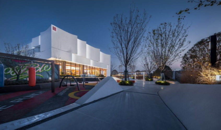 示范區(qū)以潮玩社區(qū)為定位,采用定制的酷玩與樂活城市客廳為設計理念,以年輕人為服務對象,提供場景豐富的互動分享空間,并結合景觀設計,布置可激發(fā)想象力的戶外設施,使場景充滿了先鋒精神,抒發(fā)來自內心的情感,表達運動、藝術、激情、潮流及年輕人探索趣味生活的愿望和潛力。