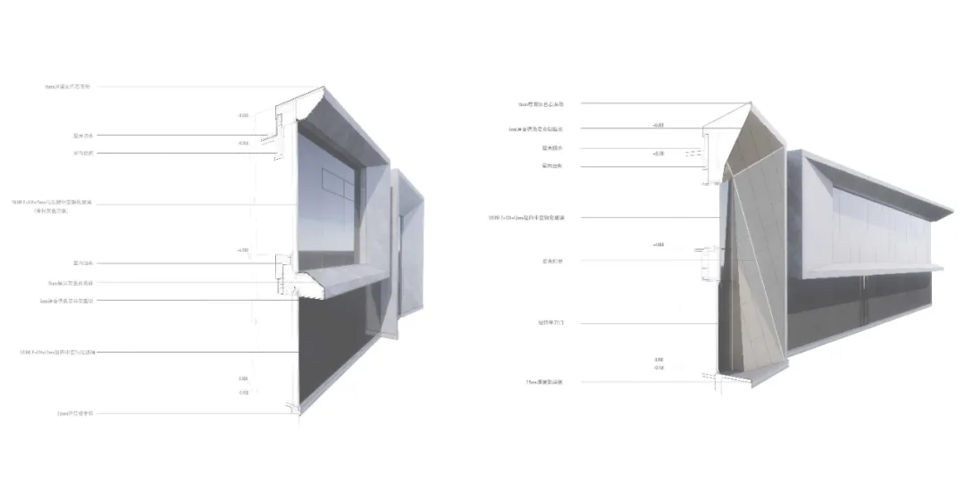 建筑在設(shè)計(jì)中將古建筑“發(fā)戧”的形式做了形體的引申處理。無論是入口處豎向的楔形尖頂板塊,恰如“嫩戧發(fā)戧”;抑或是建筑橫向的楔形延展面,可擬“水戧發(fā)戧”,皆隱約透出江南園林秀美的風(fēng)姿。