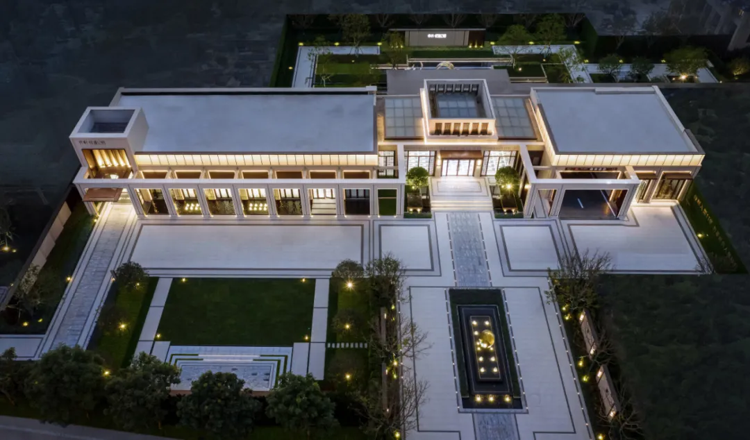 蘇州融信碧桂園·大境風(fēng)華的展示中心,是一個新中式園林中的極簡藝術(shù)館。設(shè)計師希望用最簡單直白的體塊、淺素的色彩、氤氳的光線,來表達一個沉浸在自然中的場所。建筑的造型采用了矩形作為基本的組件,采用切割、組合的方式進行破立,與材質(zhì)的虛實進行搭接后形成自身的獨特風(fēng)格。